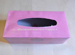 Daniel ha dipinto la scatola con il rosa, abbiamo usato fucsia e bianco non mescolati bene in modo che la scatola non venisse di un rosa omogeneo.